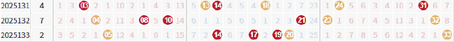 在双色球开奖中,连开记录都停留在了14期,在25131-25133期的开奖中,也只有24079-24081期出现过一次,相同跨度三连开今年首次出现。这3期连开的跨度为24,如上图所示,放眼近5年双色球开奖号码中,未经授权禁止转载!跨度连续2期开出相同数据还算常见,两大特殊现象同时现身实属罕见。从没出现过连续4期开出相同跨度的情况!双色球第25133期开奖,这次能否追上甚至超过前2次的记录,